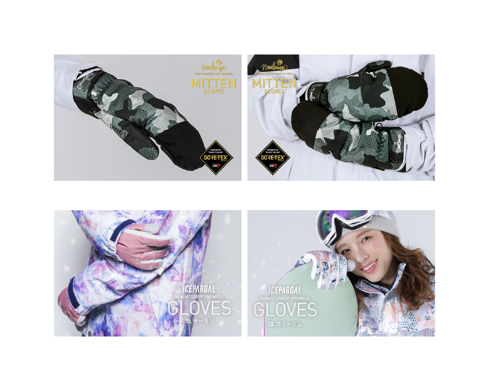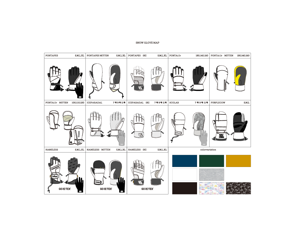 スノーウエアテキスタイルを落とし込んだグローブ企画Jrから高機能ぶらんどまで13種展開
